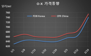 표, 그래프: <O-X 가격동향> <화학저널 2021/02/25> |
