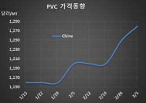 PVC(Polyvinyl Chloride)는 1300달러에 육박했다.