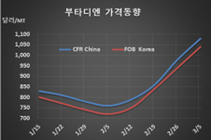 표, 그래프: <Butadiene 가격동향> <화학저널 2021/03/09> |