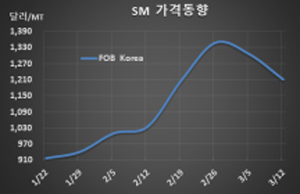 표, 그래프: <SM 가격동향> <화학저널 2021/03/17> |