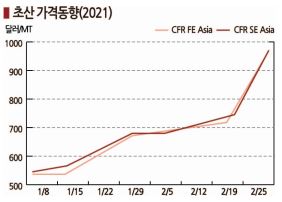 아시아 현물가격 1개월만에 700달러로 반등 … 4-6월 정기보수 집중