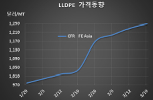 표, 그래프: <LLDPE 가격동향> <화학저널 2021/03/22> |