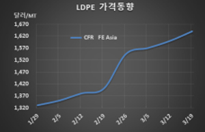 LDPE(Low-Density Polyethylene)는 1600달러대 중반으로 올라섰다.