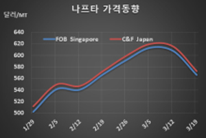 표, 그래프: <Naphtha 가격동향> <화학저널 2021/03/22> |