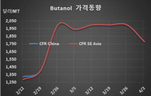 n-부탄올, CFR China 1780달러로 20달러 폭락 … 2-EH 1710달러