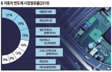 하지만, 자동차용 반도체에서 국내기업들은 존재감이 약한 편이다. 삼성전자 시스템LSI 사업부에서 자동차용 애플리케이션 프로세서(AP)인 엑시노스 오토를 내놓았으나 매출 점유율이 순위권 밖에 머물고 있다.
