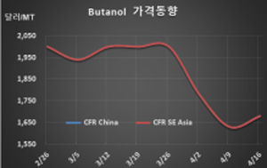옥소알코올(Oxo-Alcohol)은 등락이 엇갈렸다.
