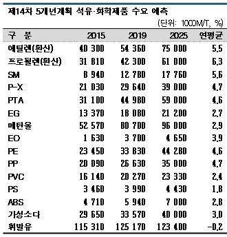 비석유 베이스 에틸렌 비중을 2019년 22.3%에서 2025년에는 24.0%로 확대할 수 있을 것으로 기대하고 있다.