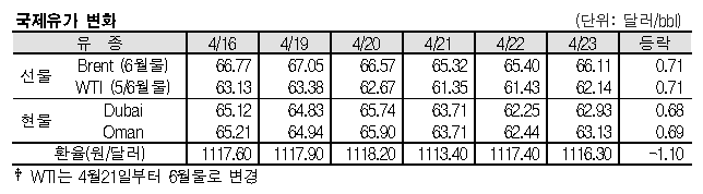 브렌트유, 66.11달러로 0.71달러 올라 … 두바이유는 62.93달러
