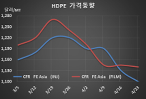 HDPE(High-Density Polyethylene)는 1100달러에 턱걸이했다.