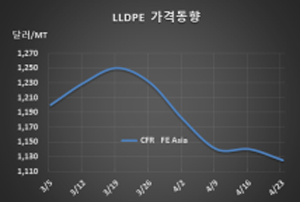 LLDPE(Linear Low-Density Polyethylene)는 1100달러대 초반으로 하락했다.