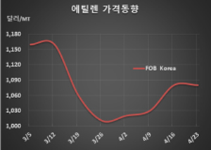 표, 그래프: <Ethylene 가격동향> <화학저널 2021/04/26> |