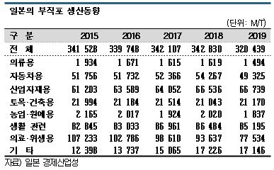 특히, MB 부직포는 마스크 생산 확대로 가운용 생산에 대응하지 못하는 상황에 이르렀고, 일본 부직포 생산기업들은 안정공급을 목표로 생산체제를 강화하고 있다.