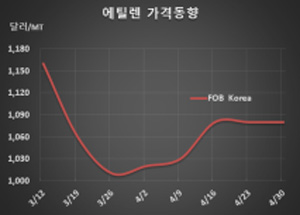 에틸렌(Ethylene)은 2주째 횡보를 이어갔다.