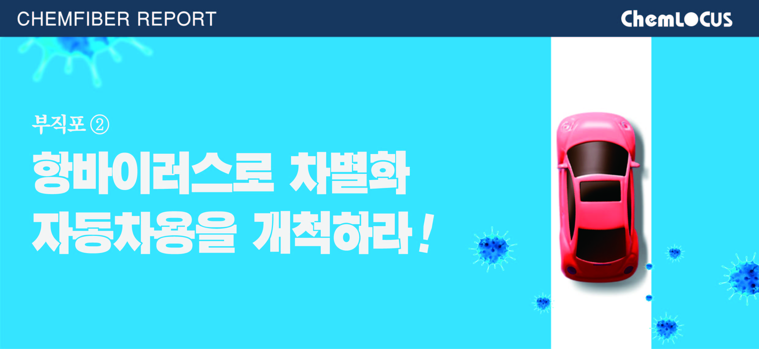 높은 수준의 항균‧항바이러스 효과를 나타내는 약제를 투입하고 독자 기술로 장기간 효능을 유지함으로써 자동차 내장재 적용이 가능할 것으로 기대하고 있다.