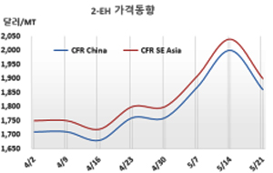 표, 그래프: <2-EH 가격동향> <화학저널 2021/05/25> |