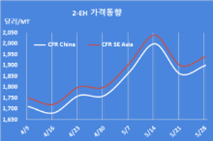2-EH, CFR China 1900달러로 40달러 상승 … 정기보수 따라 등락