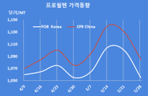 FOB Korea 1055달러로 45달러 급락 … PDH 90만톤 7-8월 가동