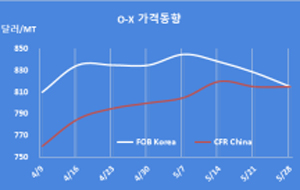 CFR China 830달러로 5달러 하락 … O-X, FOB Korea 815달러