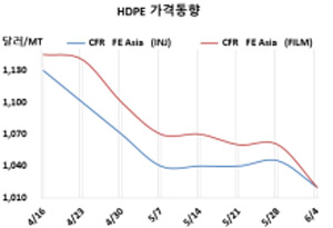 HDPE(High-Density Polyethylene)는 폭락과 급락 현상이 동시에 나타났다.