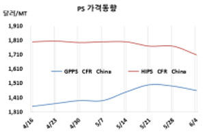 표, 그래프: <PS 가격동향> <화학저널 2021/06/09> |