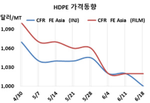 표, 그래프: <HDPE 가격동향> <화학저널 2021/06/21> |