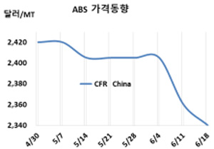 표, 그래프: <ABS 가격동향> <화학저널 2021/06/23> |