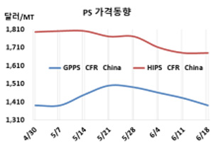 표, 그래프: <PS 가격동향> <화학저널 2021/06/23> |