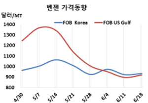 벤젠(Benzene)은 미국가격 상승을 타고 소폭 상승했다.