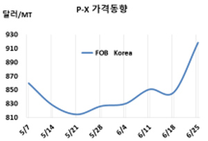 표, 그래프: <P-X 가격동향> <화학저널 2021/07/01> |