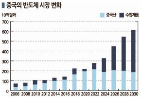 컨설팅기관 IBS는 글로벌 반도체 수요 가운데 중국이 차지하는 비중이 2019년 53%에서 2030년 58%로 높아지고, 중국 반도체 서플라이 체인에서 중국산 비중이 2030년에는 40%대에 달할 것으로 예측하고 있다.