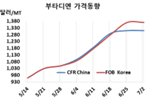 부타디엔(Butadiene)은 폭등을 유도하는 현상이 나타났다.