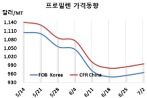 프로필렌(Propylene)은 폭락 현상이 나타나지 않았다.