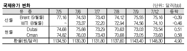 반면, 두바이유(Dubai)는 0.51달러 상승하며 73.54달러를 형성했다.