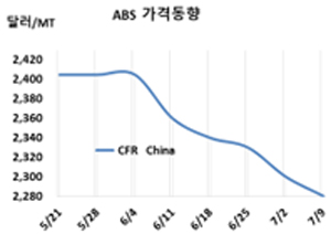 표, 그래프: <ABS 가격동향> <화학저널 2021/07/14> |