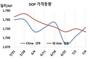 표, 그래프: <DOP 가격동향> <화학저널 2021/07/15> |