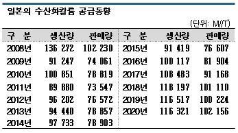 다만, 일본소다(Nippon Soda)가 2020년 8월 가성칼륨을 포함해 관련제품 생산 중단을 선언하는 등 근본적인 구조개혁에 나선 가운데 일본 정부가 한국산 탄산칼륨에 반덤핑관세 부과 판정을 내리는 등 염화칼륨 시장을 둘러싼 환경이 크게 변화하고 있다.