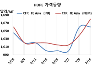 표, 그래프: <HDPE 가격동향> <화학저널 2021/07/19> |
