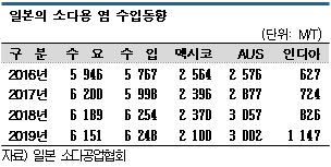 소다회 내수 침체는 수입에도 영향을 미치고 있다.