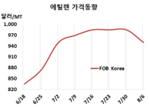 표, 그래프: <Ethylene 가격동향> <화학저널 2021/08/09> |