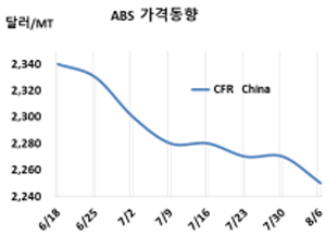 표, 그래프: <ABS 가격동향> <화학저널 2021/08/11> |