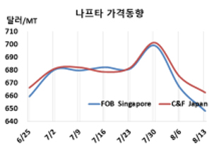 표, 그래프: <Naphtha 가격동향> <화학저널 2021/08/17> |