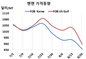 [석유화학] 벤젠, 건설 경기 둔화에 하락 지속 | 2025-09-10 | ||