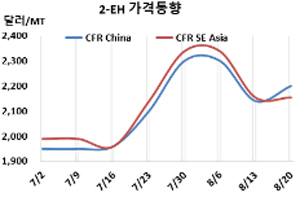 표, 그래프: <2-EH 가격동향> <화학저널 2021/08/26> |