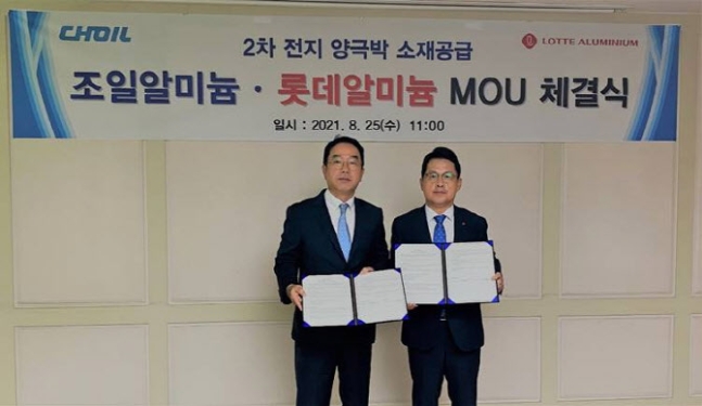 롯데알미늄(대표 조현철)이 조일알미늄과 2차전지 양극박 원료 공급을 위한 업무협약을 체결했다. <화학저널 2021/08/26> |