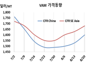 표, 그래프: <VAM 가격동향> <화학저널 2021/08/27> |