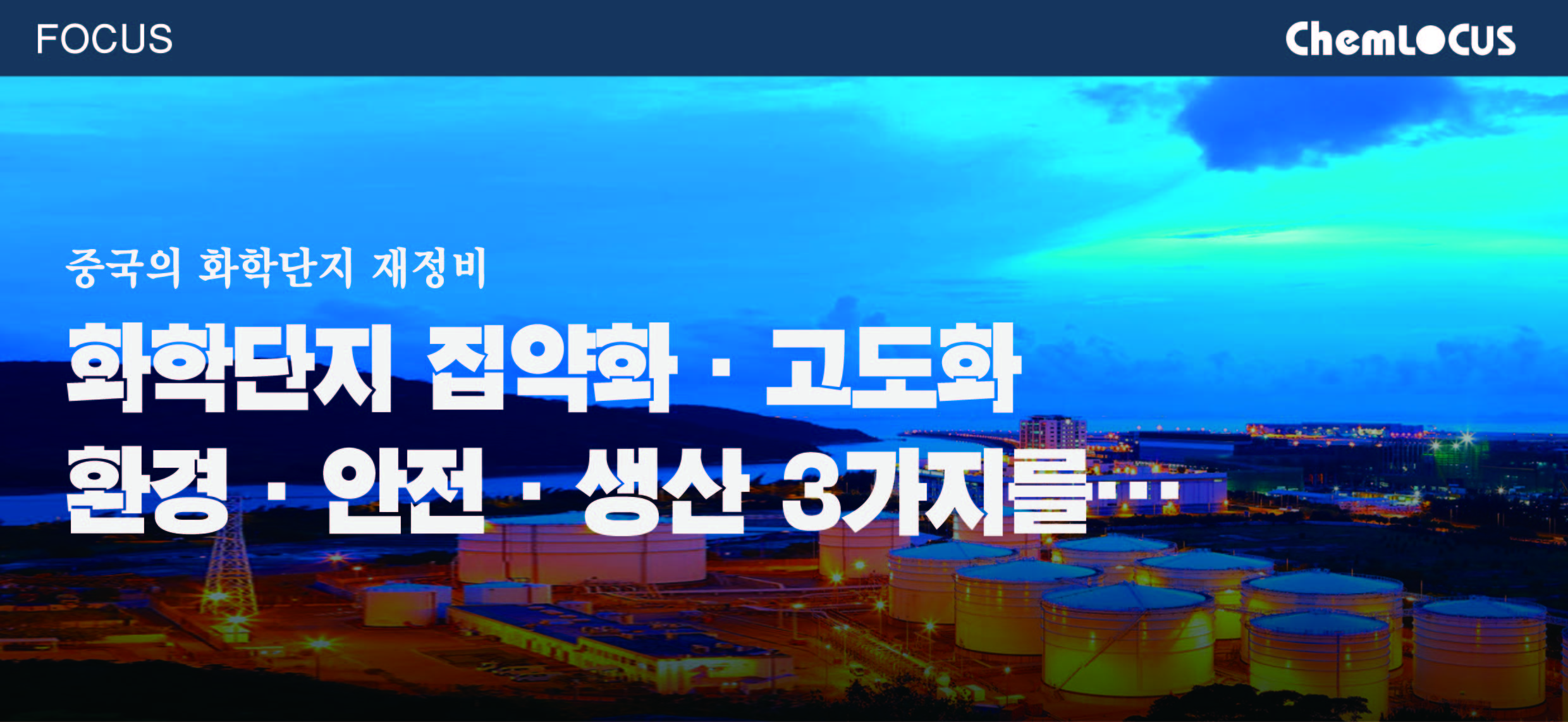 중국 정부는 현재 수십개 존재하는 화학원구와 7대 석유화학기지를 중심으로 5대 석유화학 클러스터를 구축함으로써 스케일 메리트를 활용할 수 있는 구조로 바꾸고 안전관리를 강화하겠다는 목표를 세우고 있다.