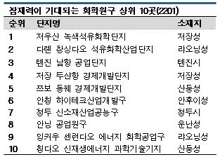 상위 30위에 준하는 위치로 높은 성장이 가능할 것으로 예상되는 10대 잠재력 화학원구에는 2020년과 마찬가지로 저장성의 저우산 녹색석유화학기지, 랴오닝성(Liaoning)의 다롄 창싱섬 석유화학산업기지가 각각 1위, 2위를 차지했다.