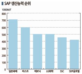LG화학은 국내 유일의 SAP 생산기업으로 생산능력이 50만톤에 달하고 있다.