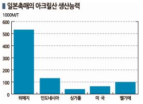 특히, 여수에서 SAP 50만톤과 함께 아크릴산 생산능력 64만9000톤 플랜트를 가동함으로써 수직계열화를 구축해 코스트 경쟁력이 높은 것으로 평가되고 있다.